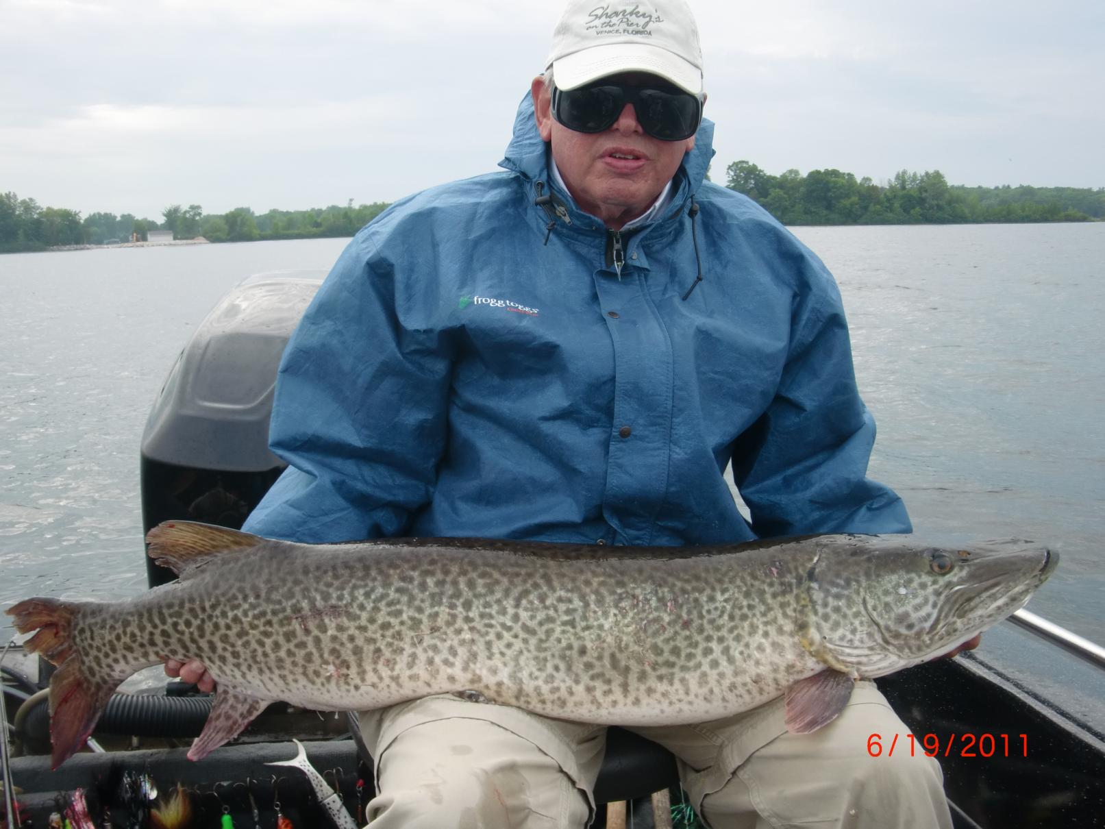 again caught Bass no Muskies, got caught in 2 big rain storms, 1st one about 3PM heavy Rain, 2nd one about 4PM got off lake and tried to wait out the lighting,rain and hail.