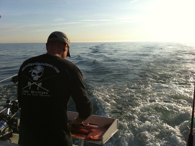Still we managed to pack the trips in where we could and make it a record year for business and fish caught. In fact, this year's fishing on the aggregate was the best I've witnessed since I started as a captain four years ago. I might even say it's better than many of the seasons back when I was first mate. Sure we had a few tough trips here and there, that's fishing, but I ran some numbers and calculated that we returned to port each trip with an average of 15 fish and had the crews limited out nearly 40% of time. I attribute these figures to two factors: we indeed seemed to have lots of fish at least within reach of Waukegan all season long as well as I continue to get better and better as a fisherman and a Captain. On the latter point, there were some observations that I made this season that seemed revelatory to me and I will continue to employ and fine tune these once enigmatic matters in the seasons to come.