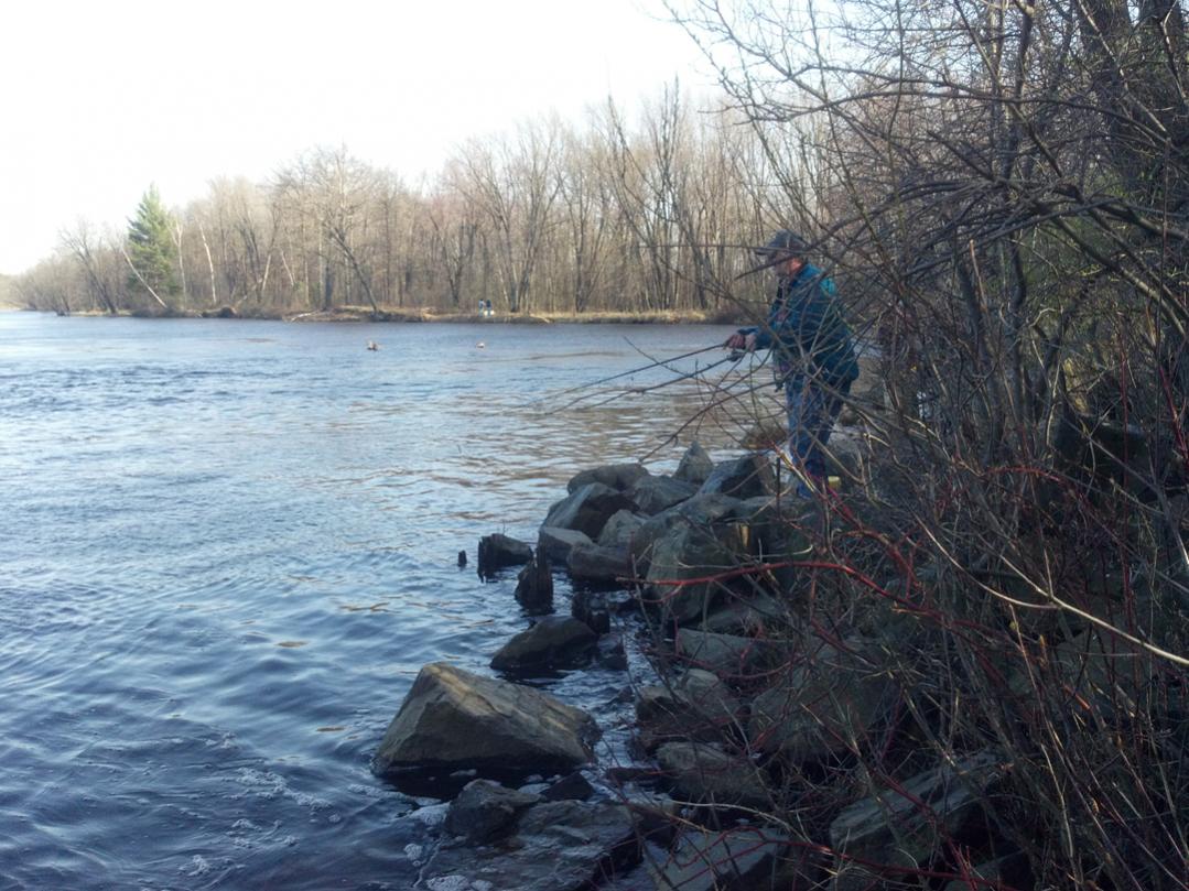 #2 Take a trip SW of Eagle River to Tomahawk, WI and the Wisconsin River. On the south side of town, beginning at the paper mill dam, the WI River is open to walleye fishing. You can fish from shore or from a boat if you decide to haul yours down there. Pete and I found the local bait stores very helpful with info and determining just where we could fish legally for gamefish. Its a cool outing, well worth the travel time to do a little walleye fishing.