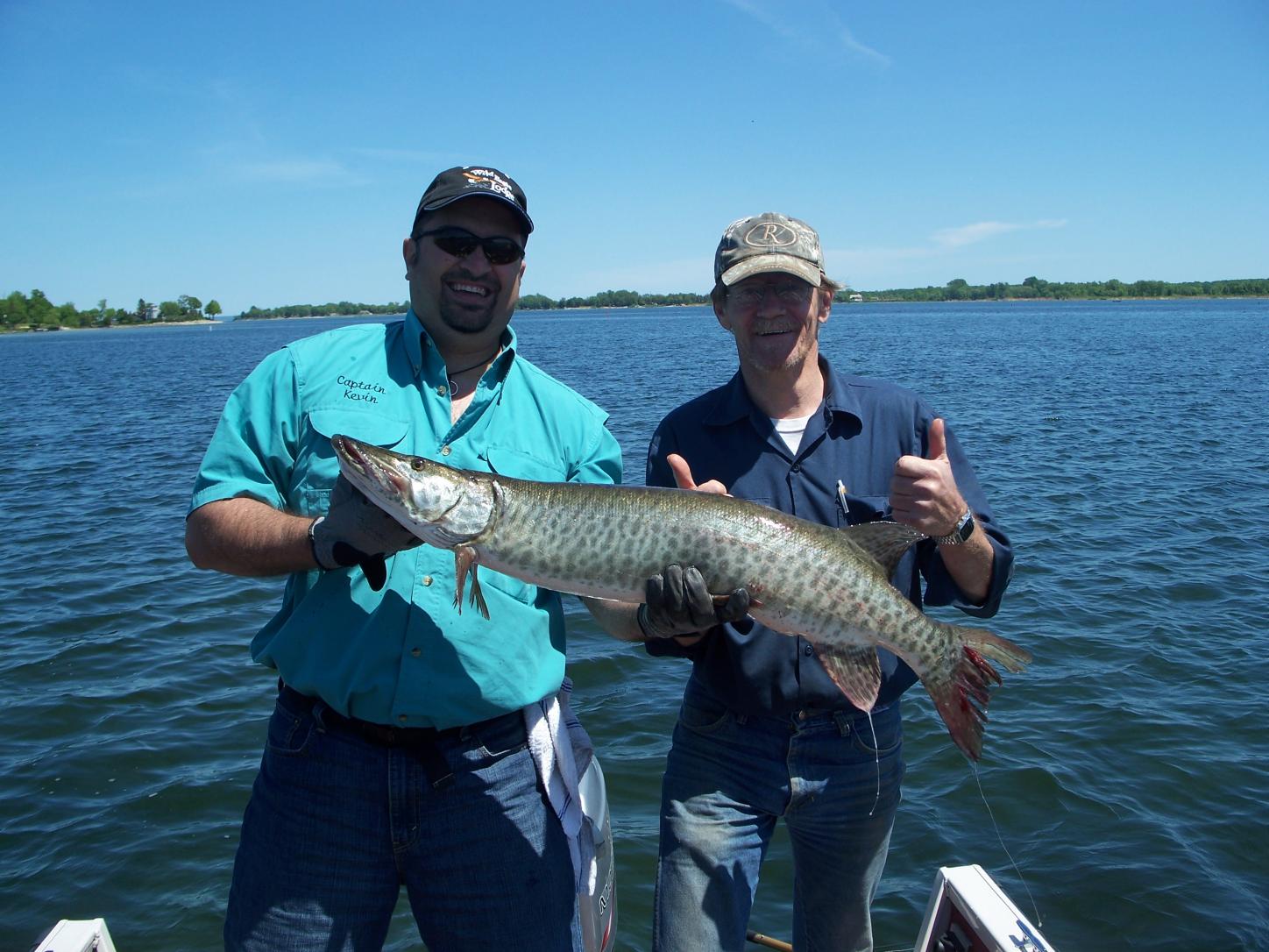 Attachment 16607Well folks, musky opener was today in the northern zone of Wisconsin. That includes the Bay of Green (aka Green Bay)! The fishing was a bit off today. Normally this time of year we are looking for the Muskies to be in post spawn mode. Well, with the water temps topping out at 72 degrees in the fox rover and lower bay today the muskies have moved out of their post spawn areas and they seem to have migrated out into the main area of the Bay looking for structure and baitfish. The river, which is usually a very good source of muskies during the first few weeks of the opener was quite barren today. One of my clients Pete was able to pick up this nice pike early this morning but the remainder of the day was very very slow. I'll be doing some more fishing over the next week looking to locate these post spawn muskies and reporting back here so if any of you happen into the Green Bay area you will have some ideas where to look. I will also be doing some walleye fishing with some clients tomorrow afternoon and I will report back on how the action for these wonderfully tasty fish is going here as well! Take care and good luck!