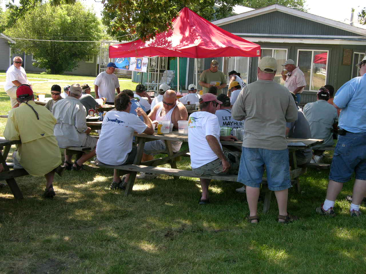Congrats to everyone who fished and especially those who scored a fish! High, bluebird skies and steamy hot weather kinda put the bite into a funk. Nevertheless, 6 teams registered a fish and everyone enjoyed the raffle and awards afterward! Here are the totals from 28 boats: