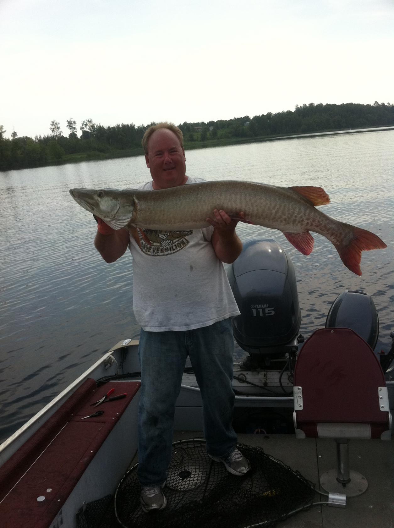 Hey everyone, the musky fishing on Vermilion the past two weeks has been great. We've boated 23 fish in the last week and a half and had a four 4 fish day on 7-12-12. On 7-12 we boated a 47", 44",42" and a 36" and lost two other fish. I'll have to say the 12th was the most exciting day on the lake i've had. We started fishing a 2:30pm and fished til 9:30pm, I missed a musky on my third cast and we saw fish every where we fished. We had 20-30 follows in that time we fished and like i said we boated four fish and lost two other fish. All our fish we caught and saw that day were on the rocks. My wife boated a nice 48" musky on 7-8-12. She was casting a pink marabou along a rock reef when her 48" musky ate at boatside. Most of the fish we've caught in the last two weeks have been off the rocks. We've been casting the rock points and breaks with bucktails and some topwater. I did get a nice 52" yesterday in a weedy bay. I was working a topwater along a cabbage line when the 52 followed it up to the boat then disappeared. I went back to the area 5 minutes later casting the same topwater but from a different angle when she just exploded on the topwater about 30 feet out from the boat. I also boated a 43" later in the afternoon in the weeds casting a bucktail. That's it for now i gotta head up to the lake, i gotta guide this afternoon. Thanks for checking us out. John.Attachment 17475Attachment 17476Attachment 17477Attachment 17478