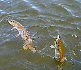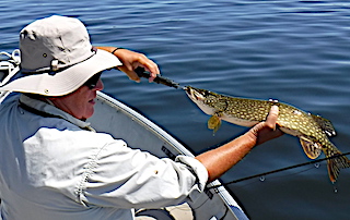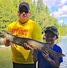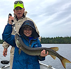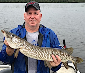 Father & son Bob & Ron Ramsey from Leavenworth, KS & Arden, NC returned for their 13th consecutive year. DOA they, just having a few hours, they went right to a few of their old haunts catching a total of 7 Northern Pike the largest being a 35-incher. 1st day was very good catching many very nice size Northern Pike 28 to 35-inches. 2nd day had them catching many Pike again, but Ron walked away with the prize of the day catching a HUGE FAT 39-inch Tiger Muskie. 3rd and final day was just as good as the first two catching plenty of Pike plus seeing a few Muskie follows. During their 3-day stay they did very well catching larger fish, but the biggest catch of all was making another set of father and son memories. Before departing ways Bob made reservations for the same dates in 2018.