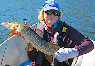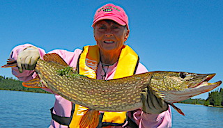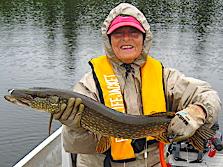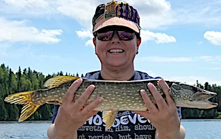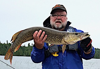 Mike & Janet Estes from Livonia, MI returned for their 5th time and started out on their DOA, fishing for just a few hours before supper, catching 11 Northern Pike, loosing 3 others and 1 Smallmouth Bass. 1st day was another good Northern Pike day catching many 28 to over 30-inches and Jan caught 2 big Smallmouth Bass at 17.5-inches. 2nd day was great Northern Pike fishing catching 28 between 28 to 31-inches and having 3 doubles. 3rd day was a very good day with the highlight fish catch being a BIG Northern Pike by Mike. 4th day was hard rain until early afternoon then high winds which kept them off the water most of the day. 5th day was a fabulous weather day catching over 20 Northern Pike and a Smallmouth Bass. 6th & final day was not gangbusters but they caught fish and enjoyed their last hours enjoying the wilderness that surrounded them. Both said they had a great trip and made their reservations for 2018 before departing.