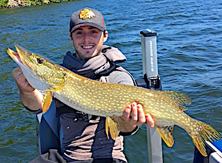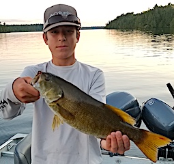 Father & Sons making their 1st appearance at Fireside Lodge were Patrick, Patrick II (PJ) and 14-year old Joe all from Lafayette, CA. 1st day these three did great catching many Smallmouth Bass an a few Northern Pike PJ landing the largest Smallmouth at 17.5-inches. 2nd day was a great day catching over 20 Smallmouth Bass, most on tube jigs, and 8 Northern Pike on a Yo-Zuri Stick Bait making for a 30 Fish Day.