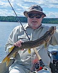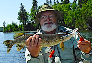 Good friends of Steve, Jerry Jester & Larry Wegmann both from Springfield, MO were Fly Fishing in Canada for their 1st time. 1st day ever on our lake system and these two fly fishers did great combining for over 30 Northern Pike on the fly. 2nd day had these two catching some Northern Pike before the weather chased them in. 3rd day they were weathered in most of the day but still caught a few Pike and spent the rest of their time tying flies. 4th day was a fun fly-fishing day catching 15 Northern Pike. 5th & final day both had fun catching a few fish in the challenging windy conditions. Both said they had a fabulous stay and decided to return in 2018 by making an early reservation before departing.