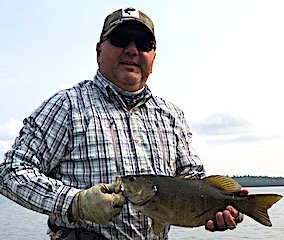 First Time Group made up of Frank and Jason Thompson from PA and Frederick, MD with Patrick and Kent McBride from OK and WV were all vey excited to be fishing at Fireside Lodge. The trip originated as a Christmas gift to Frank presenting him with a card giving him the gift of a fishing or hunting trip of his choice and Frank, after doing some research, decided on Fireside Lodge to be their fishing destination. 1st day they did really good all catching both Smallmouth Bass and Northern Pike, Patrick catching the fish of the day being a 17.5-inch Smallmouth Bass.
