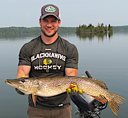 Long time return guests Gary & Josh Johnson from Midlothian, IL were back for there 2nd time this summer to chase BIG Toothy critters. 1st day was very good catching 17 Northern Pike up to 34-inches before supper. 2nd day was a bit slower for them but the third day was great hooking up on at least 35 + Northern Pike and landing 23 nice fish. They were very pleased but could not figure out why they lost so many fish, but as all fishers know we just have some days like that.
