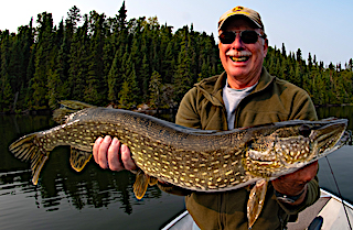 7th and final day for Jeff and his Dad they had a fantastic day again using the same lure with Bill catching a half dozen Pike and Jeff catching 11 BIG Northern Pike including a 40-inch Master Angler Award Trophy and soon after that hooked and landed a HUGE 42-inch Muskie. WOW, what a fabulous fishing feat and what a way to end a memorable traditional fishing trip with Jeff and his father.