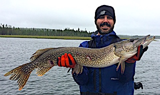 Fireside Lodge Long Timers Greg Benton, Randy Genord and his son Ryan from Grand Blanc, MI were back to comb the waters of Little Vermilion Lake for monster Toothy critters. DOA Ryan set the bar right away landing a very large bodied 38-inch Northern Pike. Severe cold front conditions on day one did not stop these three from catching some nice 30-inch plus Northern Pike and Randy caught a nice 32-inch Muskie. That evening after supper all caught more Pike and Randy caught a 36-inch Muskie that looked like it was bulging from the seams.