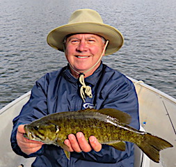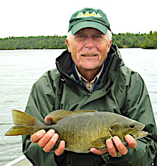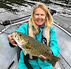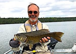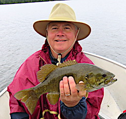 Long time return guests Joe and Marilyn Foos from Alpharetta, GA were glad to be back in the Northern Wilderness chasing Smallmouth Bass. 1st day was windy making it a challenge to surface fish but they caught 10 nice Smallmouth by the end of the day. 2nd day was better catching more but they still were not aggressive on the surface. 3rd day was a charm as they did excellent in the morning until about 1pm catching many BIG Smallmouth all on surface lures, Joe using a Wake Bait and Marilynn using her favorite Torpedo. 4th day was another fabulous day catching many Big Smallmouth all on the Wake Bait and Joe caught a Giant 19.5 inch Smallmouth Bass that he said had to weigh at least 5lbs, and Marilynn was all smiles in the dinning room at supper time saying the fishing action was great. 5th day was more of the same with both catching a lot of Smallmouth Bass, but Joie still had the hot hand with the BIG Smallmouth landing another 19-inch plus fish. Joe said it is attributed to his long precise casts and in Marilynn’s opinion it was luck, but I took the middle ground position saying it was a little of both.