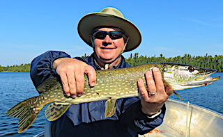 Dave & Phyllis Hancock from SC were visiting Fireside Lodge for their first time. 1st day they were met with sever cold front conditions and opted to stay in for the day. Staying in your cabin at Fireside Lodge also brings you action of a different sort as while sitting on their deck after the rain stopped they spotted a Lynx walking across our lawn in search of their favorite meal, which is a snowshoe rabbit. 2nd day was great catching 15+ nice Smallmouth Bass, Dave landing an 18.5-inch Trophy, and about 8 Northern Pike up to 30-inches. Very good for their first day ever on Little Vermilion Lake during post cold front conditions and this was all accomplished within 5-7 minutes from the lodge. 3rd and final day, boy 3 days goes fast, they had an even better day fishing and Phyllis said it was so beautiful fishing in the wilderness atmosphere mother nature gives us at Fireside Lodge. They also met some wonderful people and had great conversation at suppertime in our dinning room. Both left saying they really enjoyed their first visit to Fireside Lodge.