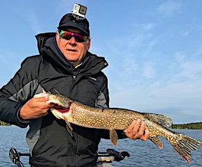 2nd day they were facing post cold front conditions catching a lot of fish with Pike up to 30-inches and Smallmouth Bass in a variety of sizes. 3rd day Bill was Muskie fishing while Matt was using plastics trying to pick up Smallmouth Bass in the weeds. Well both were successful with Bill having a very good day catching bigger Pike while seeing some Muskie having one very BIG Muskie follow, and also having the opportunity to hook a very large Muskie which took his drag screaming so fast he thought he was fishing salt water, only to have the hook pop out on the final run. Matt also did well searching for Smallmouth Bass with the Ned Rig catching many fish including some bigger Northern Pike.