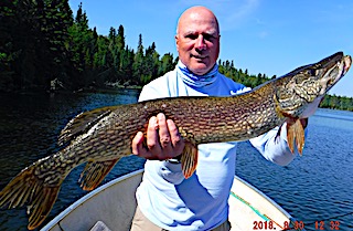 4th and final day was a super finish for these two catching a lot of BIG fish. Bill ended up with Northern Pike of 31, 33, 36, and a Trophy at 41.5 inches, a 36-inch Muskie, and his first ever Trophy Smallmouth Bass catching two at 19.5 inches and Matt had the biggest Muskie he ever caught measuring 40.5-inches. WOW what a special big fish day both saying is was their best day ever catching large fish. Both thrilled with their stay and upon departing said they will be contacting us in several weeks to reserve their dates for 2019.