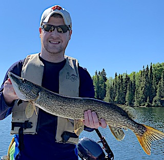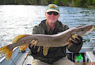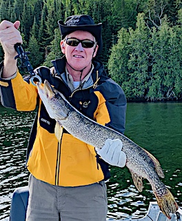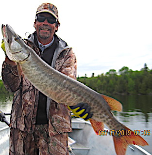 1st day they did well learning the lake while catching some Smallmouth Bass and a few Pike. 2nd day had them catching 23 nice Smallmouth Bass including Brad catching 2 trophy Smallmouth Bass 18-18.5 inches and Bob landing one in this category. The next day they caught more Big Smallmouth Bass with Brad landing a monster Trophy measuring 19.5 inches. 4th day was a banner day for these two catching 46 Northern Pike, never experiencing such fast action before. On their 5th and final day they caught well over 20 Smallmouth Bass several Northern Pike and that evening after supper Brad caught a nice 34-inch Muskie. Both had such a great time they made their reservations for 2020 before leaving.