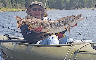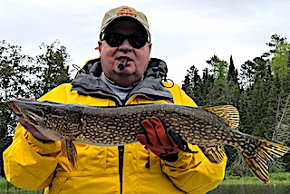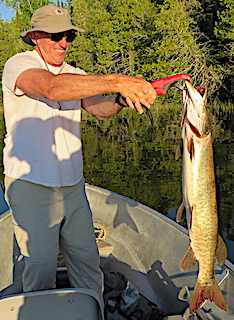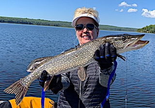 Long timers, since 1996, of Fireside Lodge Mike and Linda Lapresi from Tucker, GA were back to target BIG Smallmouth Bass primarily surface fishing. First day Mike and Linda caught close to 35 Smallmouth Bass, Mike using a popper fly-fishing and Linda using her favorite lure, which is a Tiny Torpedo. Second day was toothy critter day and did they ever have fun catching 75+ Northern Pike saying that usually when catching this many pike they tend to be smaller, but today they were running on the larger side.