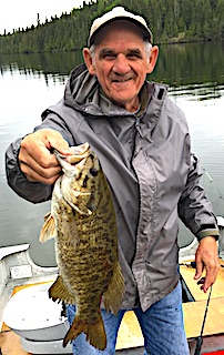 Best Friends Don Landbo and Dan Skolza from S Elgin and Sugar Grove, IL returned for 18th straight year. 1st day and DOA they caught 60 Smallmouth Bass and 8 Northern Pike. These two are very flexible using different techniques and whatever needed to catch fish. For example they may start with a surface bait for Smallmouth Bass and if they see a fish they will change to another lure / technique to find out if the alternate method will work better.
