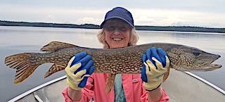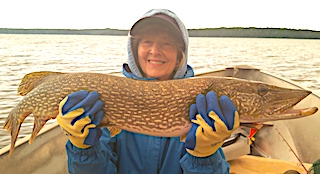 Return guest since 2003 Ed Bromeier from Boone, NC returned with his wife Millie for her 2nd consecutive year fishing at Fireside Lodge. 1st day was good day Northern Pike fishing catching about a dozen. 2nd day Millie was thrilled catching Smallmouth Bass for the first time and was very impressed at how hard and long they fight. 3rd day they had a great day catching some Smallmouth Bass but hit into a bunch of Northern Pike 30-33 inches, Millie landing the largest and they had their first ever double catch which created a little chaos in the boat. 4th day was another very good day catching Northern Pike with Millie again catching the most and the biggest fish. 5th and 6th days they continued to consistently catch Northern Pike plus Millie caught a few Smallmouth Bass and her first ever Walleye. Both are great conversationalists and they again met some new people in the dinning room and every night you would find the talking with others about many different topics and enjoying each other’s company.
