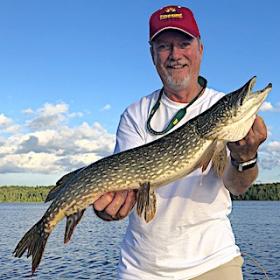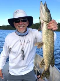 4th day was a mixed bag of fish for this group catching all species with Ron even catching a Walleye and Jake caught the fish of the day a nice 38-inch Barred Muskie. 5th day was a fun day catching a lot of Northern Pike and Smallmouth Bass with Steve having the Smallmouth Bass of the day catching a Trophy 18.5-incher and Jake had the largest Northern Pike landing a nice 37-inch fish.