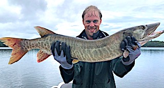 2nd day they tried a portage lake for Muskie fishing and did well getting 12-15 Follows and Kevin caught his very first and second Muskie. Before going to the lake Kevin decided to tie up a few leaders with Fly Fishing wire which its much lighter and thinner, feeling this made the difference on catching his two Muskie. 3rd day was a special Muskie day for Kevin as while having about 16 follows Kevin hooked and landed 4 Muskie 34 to 40-inches plus a BIG Fat 38-inch Northern Pike. So having never caught a Muskie before in just two days Kevin caught 6 between 32 and 40-inches. WOW That’s Muskie fishing!!!