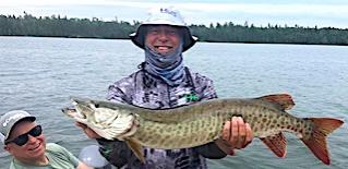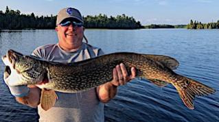 6th and final day they had three separate thunderstorms, forcing them to come in and out because of lightning. Despite this Josh and Gary did well catching Northern Pike and seeing a monster. Steve and Pete were hunting Muskie. Steve was throwing his favorite top water lure and was having a few troubles with his line. He asked Pete to see if he could straighten it out for him, which he did, then Steve asked him to make a cast to see if he thought all was ok with his reel. Well with just one cast with Steve’s rod and reel Pete had an enormous surface strike and after a battle landed a 40+inch heavy Muskie. I guess Steve’s reel and line were good! Great story and memory, which will be discussed for years to come. All left making fabulous memories and will be returning this season in the first week of September.