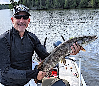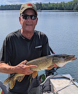 5th day had them psyched to catch Muskie, making some purchases of lures from my tackle shop that Ty and Marty (above) had success with. Well they had numerous follows and Paul caught a nice Muskie, on his new lure, and as a group they caught some Northern Pike and Smallmouth Bass. 6th and final day they had fun searching for BIG fish catching some nice size Northern Pike up to the mid-30-inch range. This group had such a blast that Patrick expressed how sad he was that he had to leave and could not stay and fish the rest of his life. All went home having another great traditional group fishing trip. Thanks for choosing us at Fireside Lodge for your special trip.