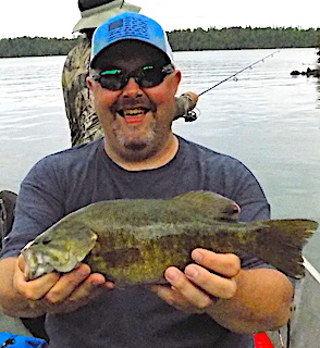 Day 3 they did very good on Smallmouth Bass concentrating on the depth of 8-10 ft. and using a slow or do nothing approach with the excellent worms they make. 4th day these three had a fabulous day finding the Smallmouth Bass hitting well on the surface, having perfect overcast and calm conditions, catching many Smallmouth throughout they day. 5th day they had another very good day catching mostly Pike. 6th and final day was another very good day catching many Smallmouth Bass along with some Northern Pike. Before supper while checking out and giving me their fish pictures, as they intended to leave early in the morning before breakfast, saying they will only see me again if they caught a picture fish. Well at the end of the evening fish they came to see me with picture of a 17.5-inch Smallmouth and Josh caught an 18-inch Master Anglers Award Trophy Smallmouth Bass. What a GREAT way to end a special and memorable fishing trip. All said they will be back.