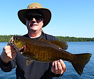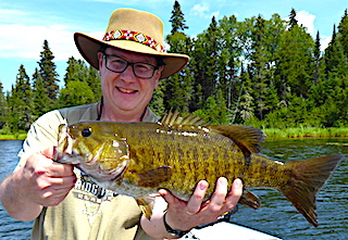 Jeff Wilson from the Burlington, ON here for his 4th time arrived with his brother Craig from Hubbard, Nova Scotia returning for his 5th trip. DOA these two did very well catching 7 Northern Pike a Muskie and seeing several other very Large Musky, plus landed 3 large Smallmouth Bass. 1st day they did great catching 50+ Smallmouth Bass, each landing a Master Anglers Award Smallmouth Bass over 18-inches and surprisingly a lot of action was on top-water despite the windy, wavy conditions. 2nd day was spent chasing Muskie having dozens of follows, landing two plus they caught a couple of HUGE Smallmouth Bass with Musky Bucktails, Craig’s having a very impressive girth.