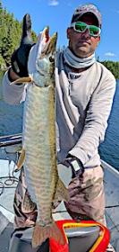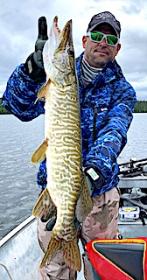 2nd day was very windy with cold front conditions but they cleaned up on the fishing, catching upwards of 40 Northern Pike having several big Muskie follows, and Marty landed another big Muskie which makes it two for him and two for Ty in just 2 full days of fishing. Sometimes a summer cold front gets Musky and Northern Pike active, which is the opposite of how most fishers think. 3rd day they had another great day Muskie fishing having over 50 follows and each again caught a BIG Muskie making 6 total in 3 days. Marty had something happen to him that I never saw or heard of before when a big Musky followed his figure eight over 40 times, and when Marty tried to switch his grip position from arm fatigue, his lure hesitated and that’s when the fish became disinterested and swam off. Also, Ty told me that one of his follows was from the biggest fresh water fish he had ever seen.