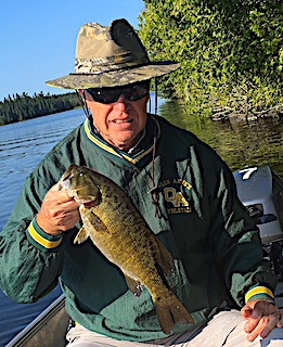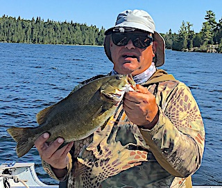 Day 3 they did very good on Smallmouth Bass concentrating on the depth of 8-10 ft. and using a slow or do nothing approach with the excellent worms they make. 4th day these three had a fabulous day finding the Smallmouth Bass hitting well on the surface, having perfect overcast and calm conditions, catching many Smallmouth throughout they day. 5th day they had another very good day catching mostly Pike. 6th and final day was another very good day catching many Smallmouth Bass along with some Northern Pike. Before supper while checking out and giving me their fish pictures, as they intended to leave early in the morning before breakfast, saying they will only see me again if they caught a picture fish. Well at the end of the evening fish they came to see me with picture of a 17.5-inch Smallmouth and Josh caught an 18-inch Master Anglers Award Trophy Smallmouth Bass. What a GREAT way to end a special and memorable fishing trip. All said they will be back.
