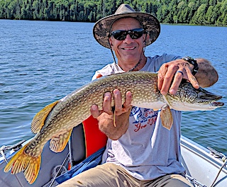 5th day had them psyched to catch Muskie, making some purchases of lures from my tackle shop that Ty and Marty (above) had success with. Well they had numerous follows and Paul caught a nice Muskie, on his new lure, and as a group they caught some Northern Pike and Smallmouth Bass. 6th and final day they had fun searching for BIG fish catching some nice size Northern Pike up to the mid-30-inch range. This group had such a blast that Patrick expressed how sad he was that he had to leave and could not stay and fish the rest of his life. All went home having another great traditional group fishing trip. Thanks for choosing us at Fireside Lodge for your special trip.