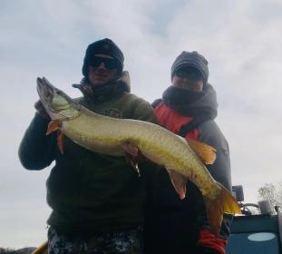 We had a fun weekend hunting muskies and a couple of milestones reached. On a chilly Saturday morning, Dewey was able to grind out his personal best measuring 41” while jigging a 7-inch musky bomb.