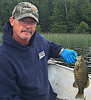 Day 5 was very windy making them fish places they normally would not, but still caught a dozen Smallmouth Bass and two Northern Pike. While using surface lures a Smallmouth Bass first hit Joe’s lure, then went after Marilynn’s and then back after Joe’s, with Joe finally catching the Bass. 6th Day they did well catching 9 nice Smallmouth Bass and 3 Pike working surface lures on a very windy day. Joe said they probably could have caught more fish using another technique but they love using top-water lures. 7th day was surprisingly good thinking that a cold front would have slowed down the Smallmouth Bass bite but it did not. They had a lot of action on surface lures even though it was windy again and had very cool temperatures. 8th and final day was slow until 10AM and then all heck broke loose and catching Smallmouth Bass on Surface lures and it never stopped until about 3PM. What a great finish to a wonderful fishing vacation for Marilynn and Joe.