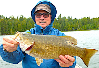 3rd day we had a classic Canadian cold front move in with cold rain and very windy conditions. They persevered all day long coming back weather beaten but not without fishing stories catching some nice Northern Pike and Pete caught his 2nd Master Anglers Award Trophy Smallmouth Bass measuring 18-inches. 4th day stayed very windy and was a bit colder but they fished all day long Tyler saying they caught plenty of fish however not the big fish they were looking, except that Pete caught his 3rd Trophy Smallmouth Bass measuring 18-inches making it three trophies in 3 days.
