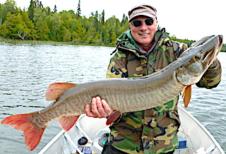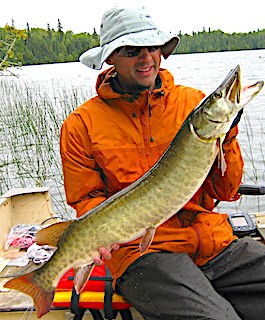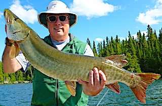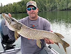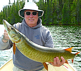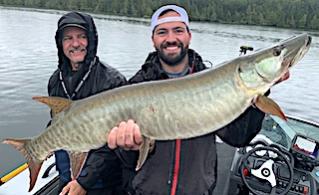 Bill Browne from Minneapolis, MN and Matt Bachinski from Ninety Six, SC arrived for their second experience fishing at Fireside Lodge. DOA they got started by catching two Smallmouth Bass and 6 Northern Pike before supper. 1st day was a super fishing day catching 30 fish, 28 Northern Pike being all bigger fish toping out with Matt’s 34-incher, Plus Matt caught a very thick 36-inch Muskie and Bill a HUGE 19-inch Trophy Master Anglers Award Smallmouth Bass. They said every Northern Pike they caught had shoulders, meaning they were very heavy thick fish.