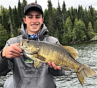 3rd day we had a classic Canadian cold front move in with cold rain and very windy conditions. They persevered all day long coming back weather beaten but not without fishing stories catching some nice Northern Pike and Pete caught his 2nd Master Anglers Award Trophy Smallmouth Bass measuring 18-inches. 4th day stayed very windy and was a bit colder but they fished all day long Tyler saying they caught plenty of fish however not the big fish they were looking, except that Pete caught his 3rd Trophy Smallmouth Bass measuring 18-inches making it three trophies in 3 days.
