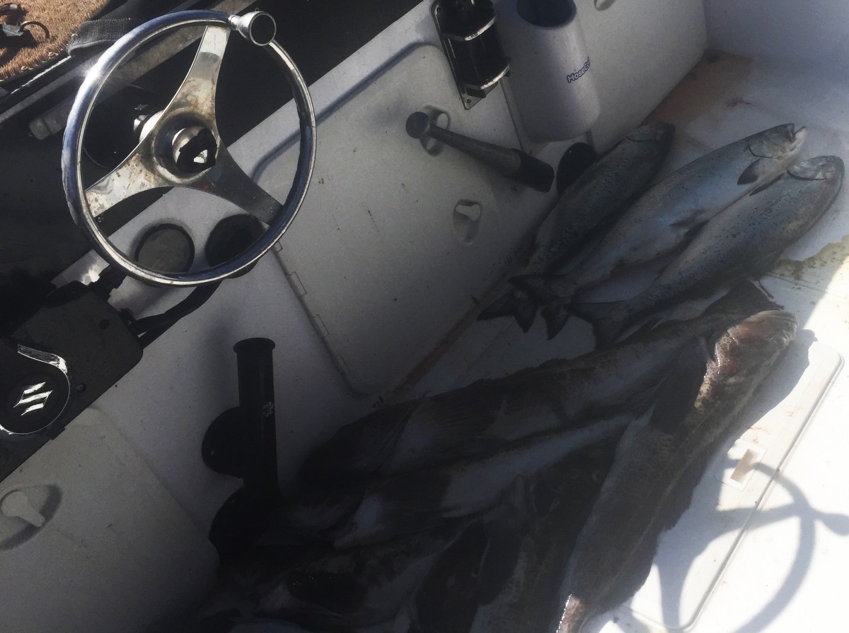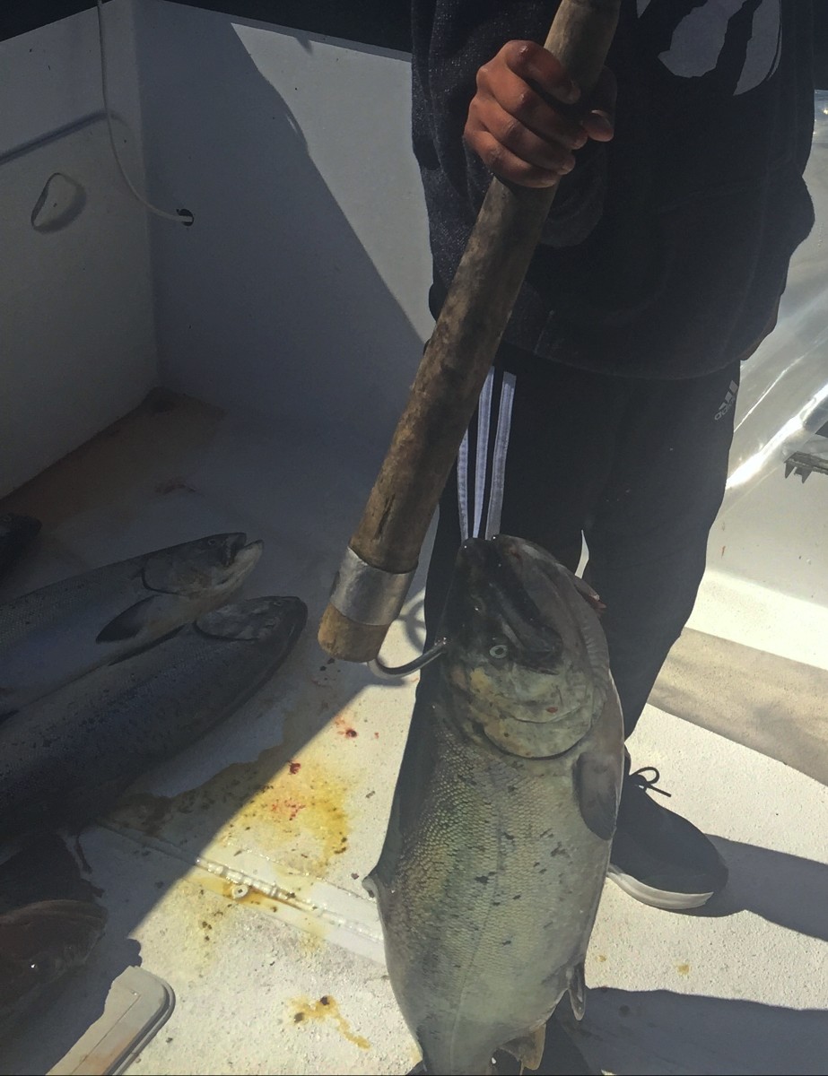 Salmon fishing has been better than normal for April so far. Our guy Dan has consistently been hitting between 6 to 12 fish per trip about 10 minutes from the harbor. The salmon are biting on little fish Hoochie‘s and small spoons like normal for this time of year. There seems to be quite a bit of bait around, especially middle fish. The salmon have mostly been between 7 to 15 pounds but there are a few larger ones around as well.