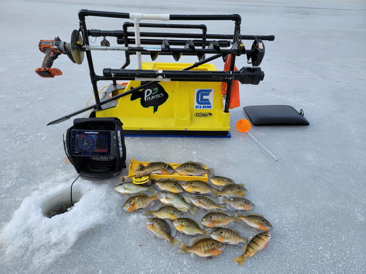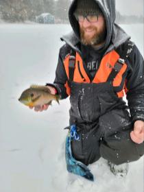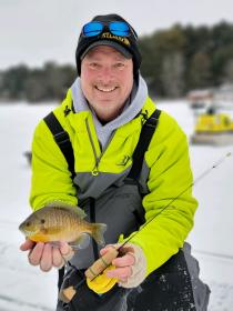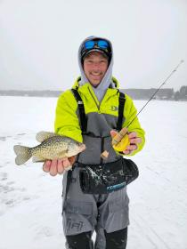 Jeff and I have been out on several small lake in central Wisconsin. At each lake we've been finding nice crappies and good size bluegills. Most of our fish have come out of 8 - 11fow, in or next to the weeds or timber. Small 3 or 4mm jigs tipped with plastic's.