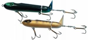 Attachment 19426The Stillwater is a topper style bait designed by Chippewa Flowage muskie guide Ty Sennett. It works great in both choppy and calm conditions. The two counter rotating blades on the tail end of the bait click against each other producing a loud metallic chatter muskies can’t resist. All Stillwaters are made with the highest quality components including: through-wire construction, extra strong stainless steel blades and heavy duty hooks. For best results reel at a steady slow to medium pace.
