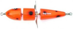 Attachment 19425The Rough Runner’s distinct sound is due to it’s unique three-piece design - The Rough Runner is a globe style bait designed by Chippewa Flowage muskie guide Ty Sennett. The Rough Runner’s distinct sound is due to it’s unique three-piece design. All Rough Runners are made with the highest quality components including: through-wire construction, an extra strong stainless steel blade, and heavy duty hooks. The Rough Runner is a must have bait for windy conditions or night fishing. For best results reel at a slow, steady speed.